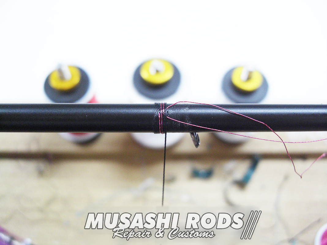 あとは コーティングを施して完成です。コーティングは 数回に分けて施工します。今回の代金は ガイド代金込みで 約2000円 前後 となります。ロッドの修理 や カスタムで お悩みの方は ご相談ください。修理カスタムの申し込みは こちら からお願いします。
