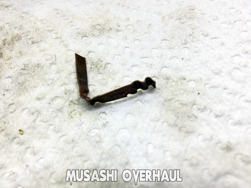 ハンドル逆転を防止するパーツ 部品番号14番 ドッグスプリング が破損しておりました。この銅製のスプリングはとても重要ですね。