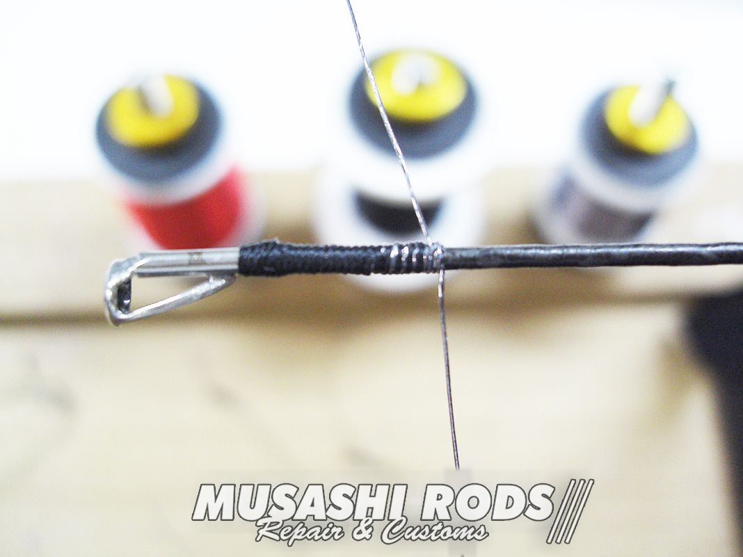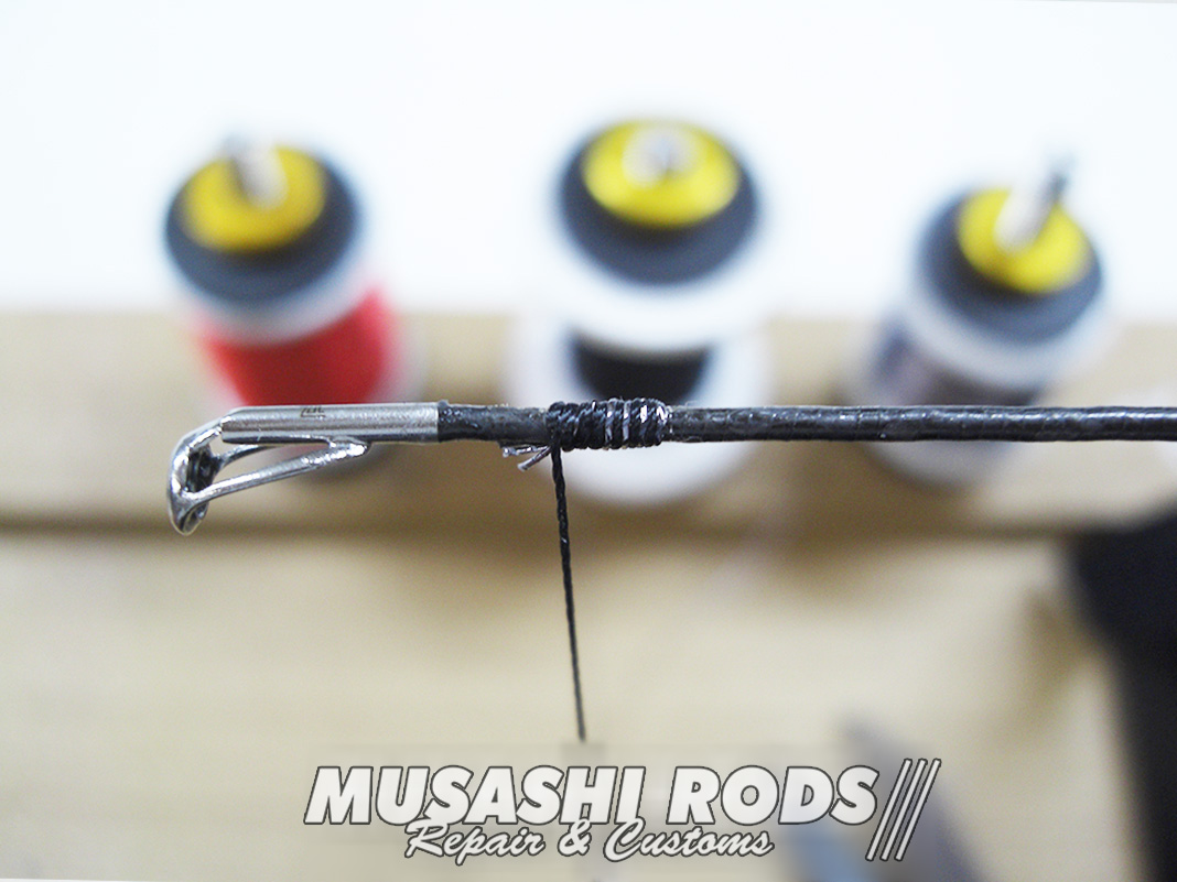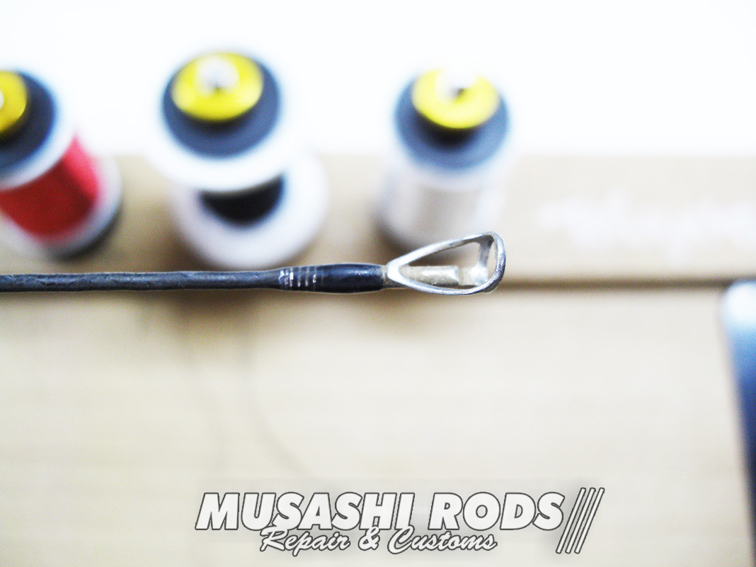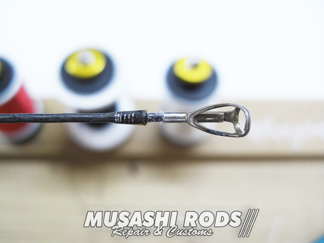 そして コーティングを施して完成です。コーティングは 数回に分けて施工します。今回の代金は ガイド代金込みで 約2000円 前後 となります。ロッドの修理 や カスタムで お悩みの方は ご相談ください。修理カスタムの申し込みは こちら からお願いします。