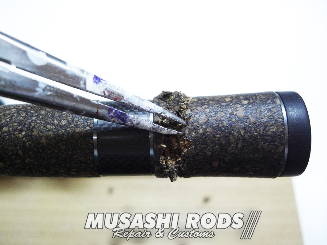 EVAのグリップを削ります。ギリギリラインまで落とします。メガバスは “極み系” 設計が多いデス。