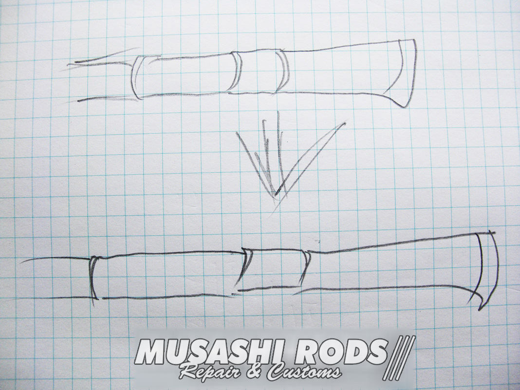 今回の青写真です。グリップのパイプを延長するだけではなく、エンド部分のグリップ面積を 倍にします。そして素材は コルク から EVA素材に改造します。同時にバランサーを入れる事なんかもできます。