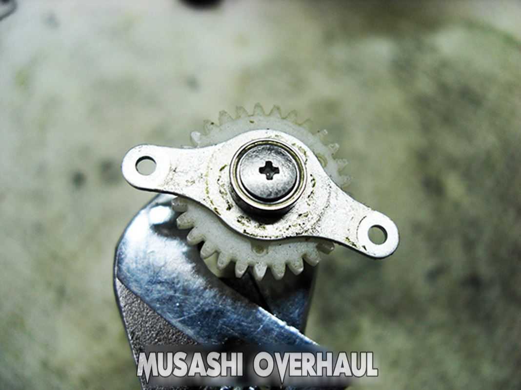 こちらの 部品番号37番 ドライブギア軸 を止めている固定ボルトは 逆ネジとなっています。無理矢理 回そうとして 潰してしまう方がいます。ご注意くださいね。