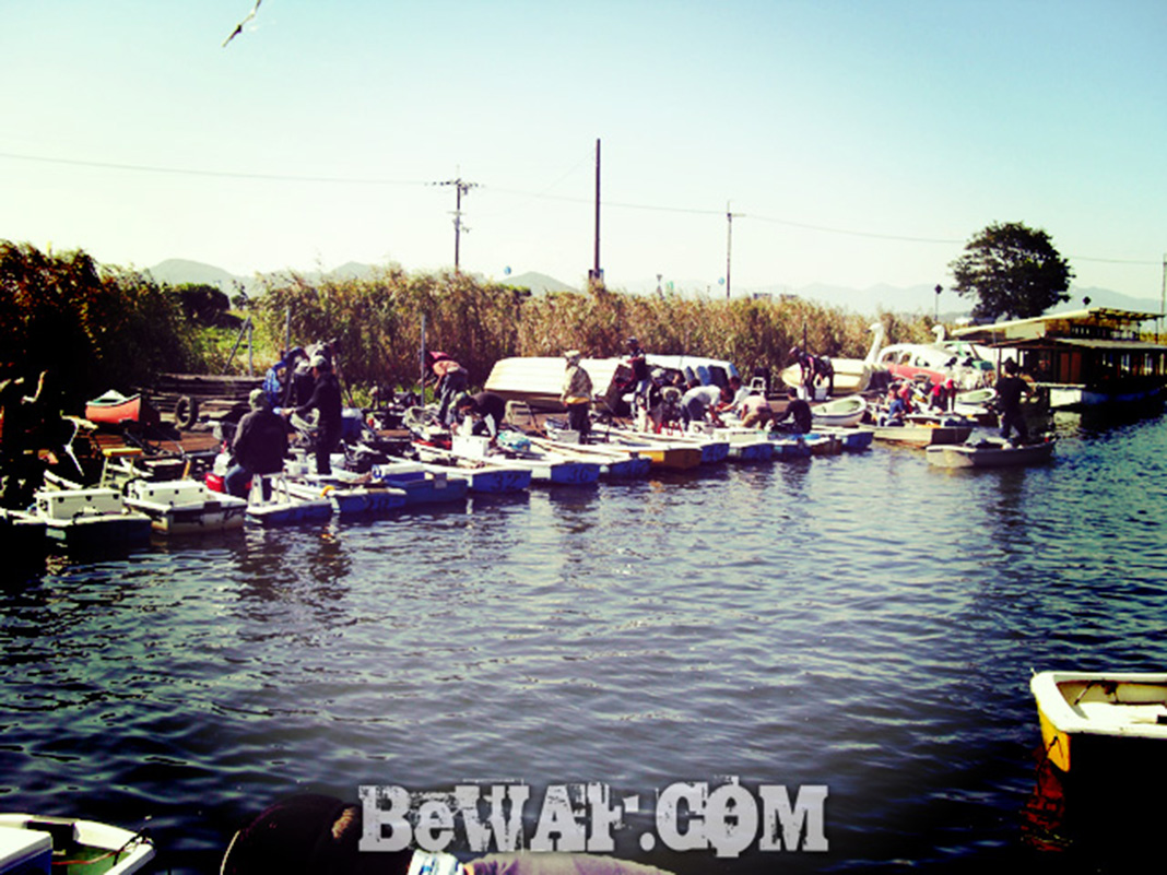 滋賀県・伊庭内湖(いばないこ)のフィールドの紹介です。伊庭内湖(大同川の水路)は琵琶湖に隣接する内湖です。面積が約49km2と24ボルトのエレキで一日かけて丁度、一周回れる程の大きさ。元々は大中湖(だいなかこ)と呼ばれる琵琶湖の一部だったが、戦後の食糧難で干拓され、西の湖と伊庭内湖に別れた、言わば関西の八郎潟にあたる。周辺は観光地となっており、公園や水車小屋もあり美しい景色が続きます。この伊庭内湖を関東のフィールドに例えるならば、霞水系、新利根川、牛久沼、印旛沼、を足したようなフィールドだが、デカバスや魚影のポテンシャルは国内最高のマッディーフィールドとも言える。また琵琶湖と直結している為か、圧倒的に西の湖より釣果は良い。各周辺は足場もしっかりしている場所も多数あり、オカッパリで狙える場所やポイントは沢山ある。またレンタルボート代は安価(午前中のみ2000円プランもあり)という事もあり、平日休日問わず常時混み合っている。