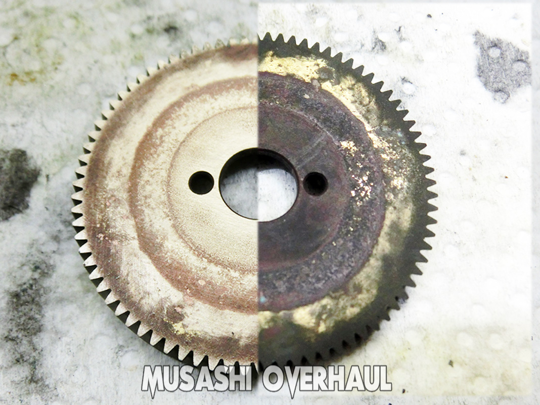 こちらも…こんなんでした。磨いて錆を落とします。各部には塩が堆積しており ベアリング が錆びて異音を発生させておりました。これぐらいの見た目、車 や バイク でしたら普通ですが リール の場合は繊細なので かなり酷いレベルです。錆害に関しては こちら にて纏めていますので参考ください。