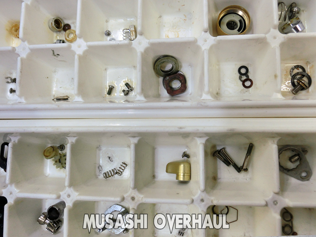 オーバーホールの基本ステップは以下の通りです:①完全バラ ②完全洗浄 ③完全磨き上げ が基本です。[展開図]