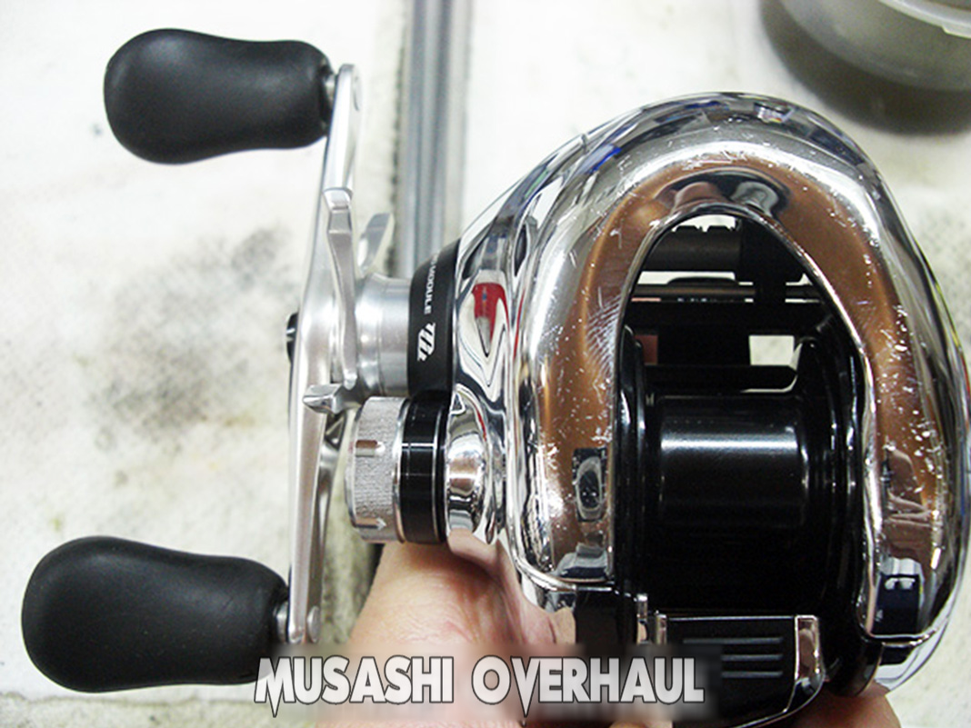 オーバーホールで受付けしました シマノ 12 アンタレス 左 (028365) です。巻くとハンドルの根元から、キュルキュル と音がするとの事でした。社外製のハンドルが取り付けており メーカーからの 作業を受けられない方、海外に駐在しておりリールのメンテナンスが受けれない方、 このような ケースでお困りの方は お問い合わせ ください。ムサシオーバーホール事業部ではスペアパーツも 豊富に在庫があります。