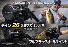 ベイトリール塗装リペイント:ダイワ 26 リョウガ 150HL (00630149) 光沢ブラック全塗装 ロゴ塗装