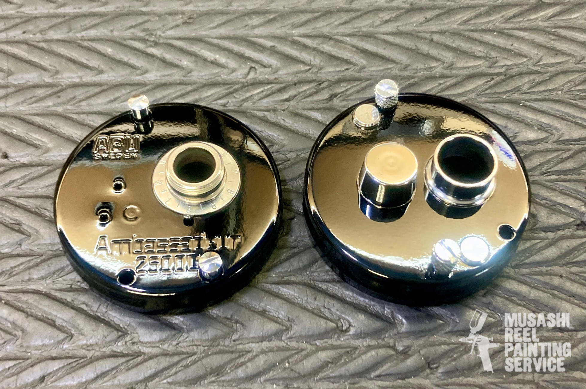 今回も 人気のアブガルシア アンバサダー のサイドカップ塗装のご依頼です。こちらのリールは カラーリング が変わるだけで キャラクター変わるような不思議なリールですね~