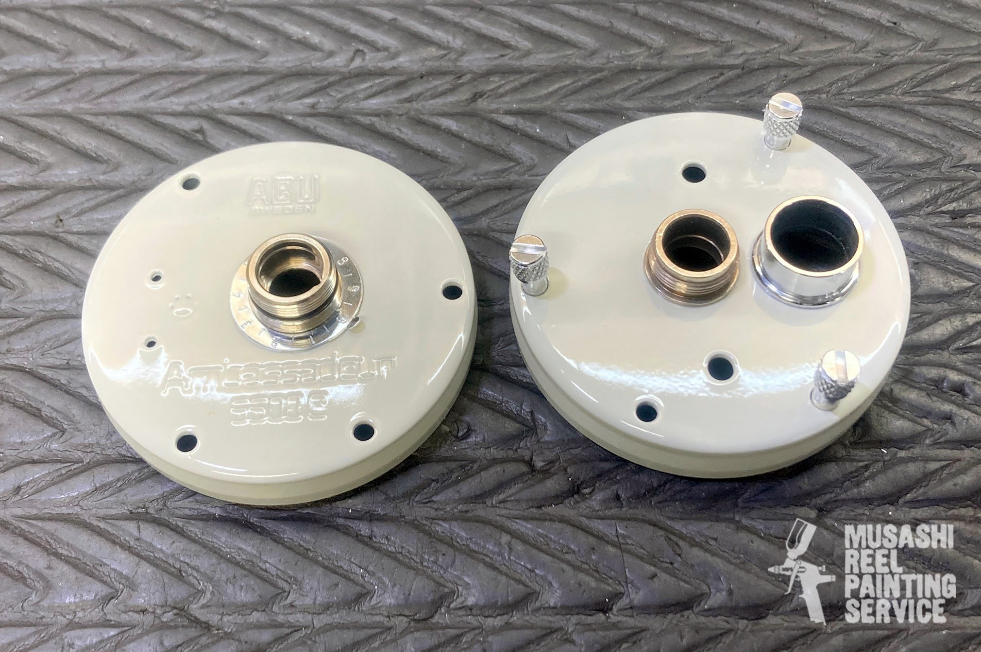 今回も 人気のアブガルシア アンバサダー 2500-5500-6000 のサイドカップ塗装のご依頼です。今回も纏めてご依頼を頂きました。カラーは ①マットブラック ②シャイニーブラック(光沢ブラック) ③クリームホワイト(ベージュ) です。それでは作業に入ります〜