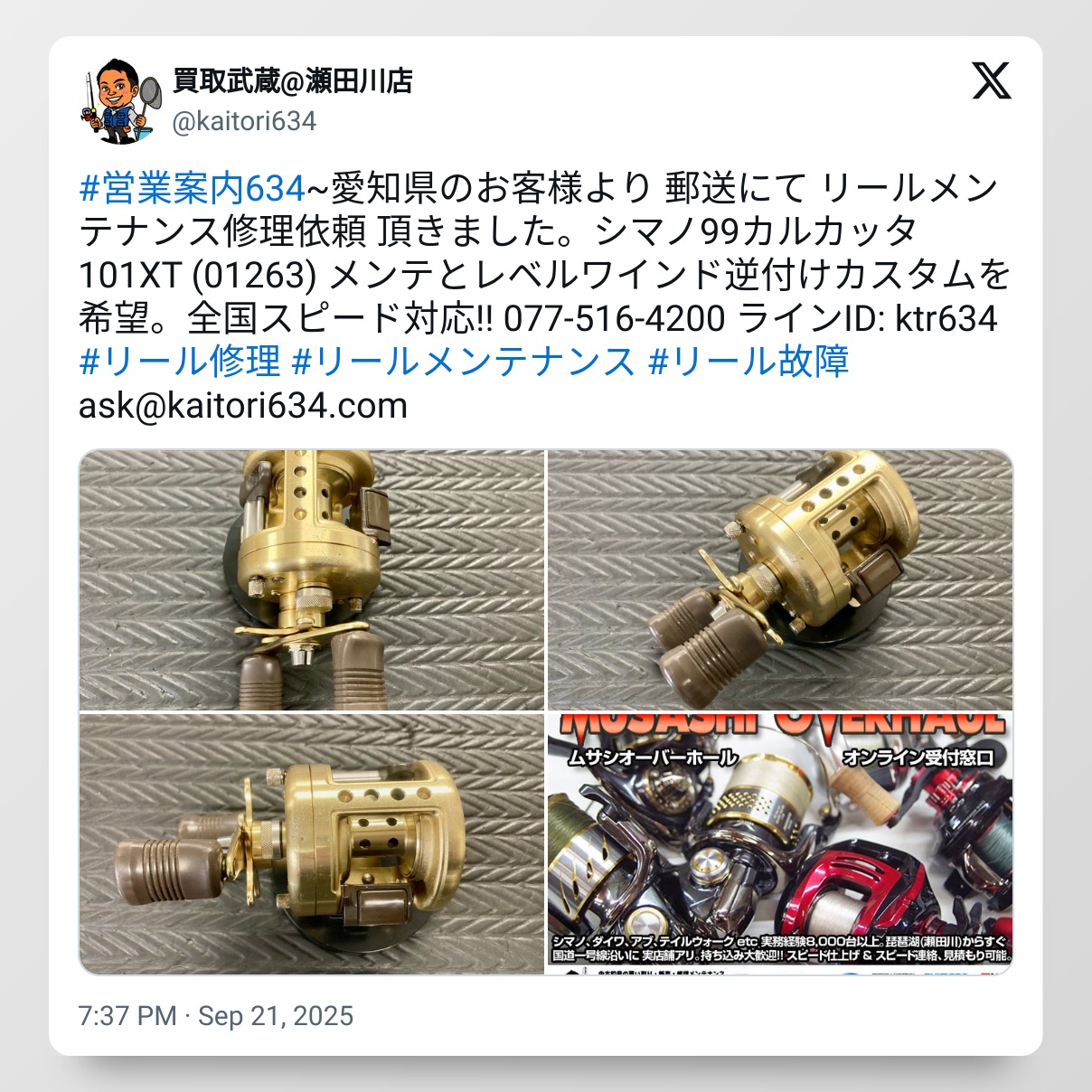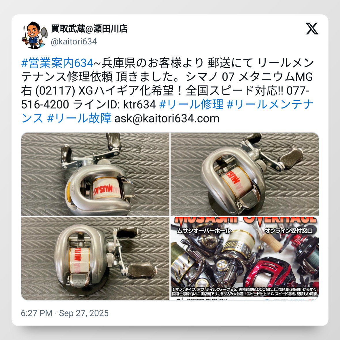 最後は 動画でお見せします。おわかりいただけたでしょうか? リールのオーバーホール&メンテナンス、修理チューンはお任せください。修理オーバーホールの申し込みは こちら からお願いします。