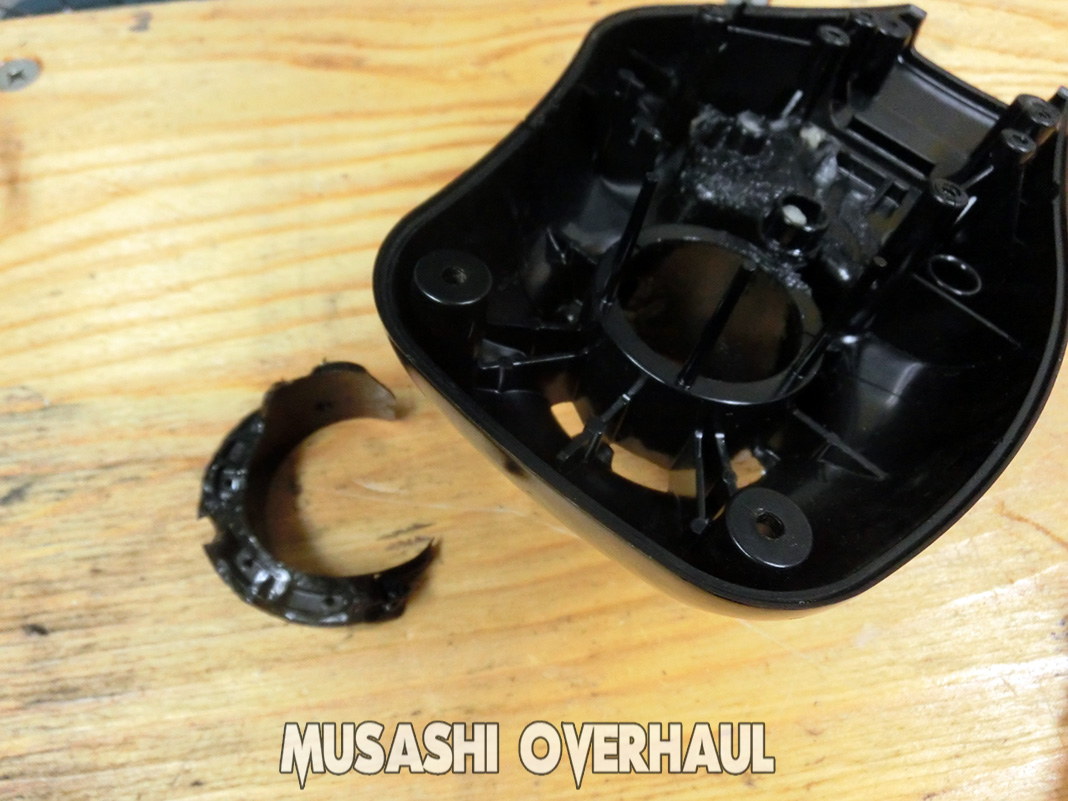 古いプラスチックが割れやすい主な理由は、紫外線、温度などの環境要因によって樹脂が弾力性を失って脆くなるためです。特にこちらの旧ミンコタ製品の樹脂は耐久性がありません。新しいパーツに交換したいところですが 生産終了パーツ で在庫がありません。